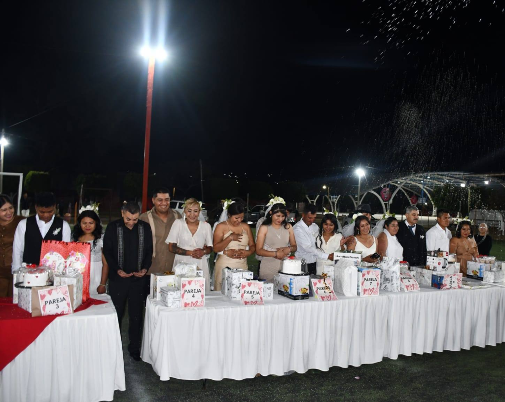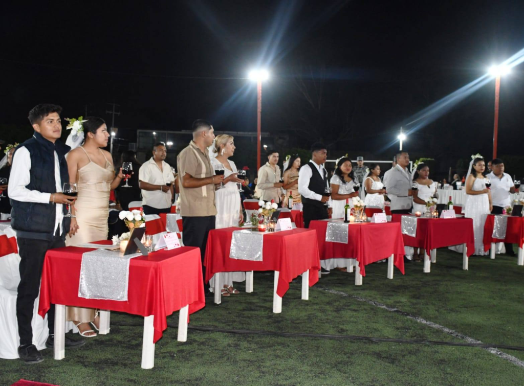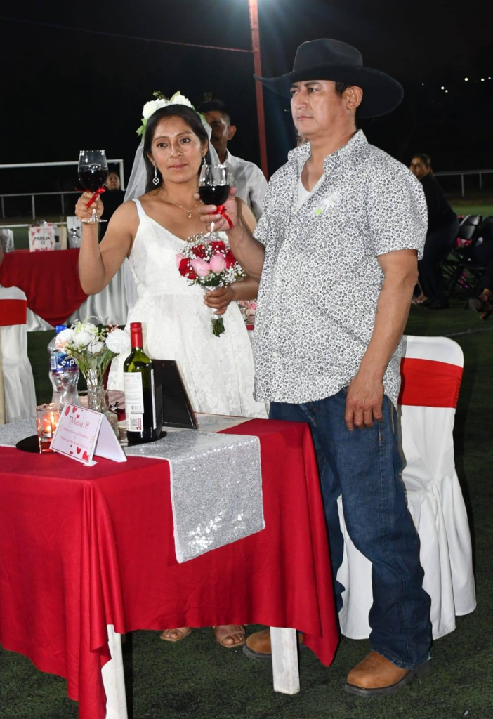 El Presidente Municipal, Narvel Mojica Sotelo, y su esposa, la Sra. Araceli Guevara Cervantes, Presidenta del DIF, presidieron esta importante celebración en el marco del «Día del Amor y la Amistad». Las parejas, provenientes de comunidades rurales y colonias, vivieron un día inolvidable, rodeados de música, amor y felicidad, gracias a la organización de este evento por el DIF municipal.