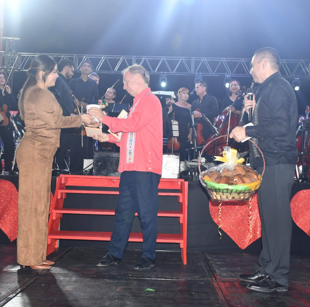 El Presidente Municipal entregó reconocimiento y presentes de productos artesanales y tradicionales de Teloloapan al Director de la orquesta, agradeciendo a la Gobernadora del Estado Evelin Salgado Pineda y a la Secretaria de Cultura Mtra. Aida Melina Martínez Rebolledo, por su apoyo y solidaridad para la organización de este evento.