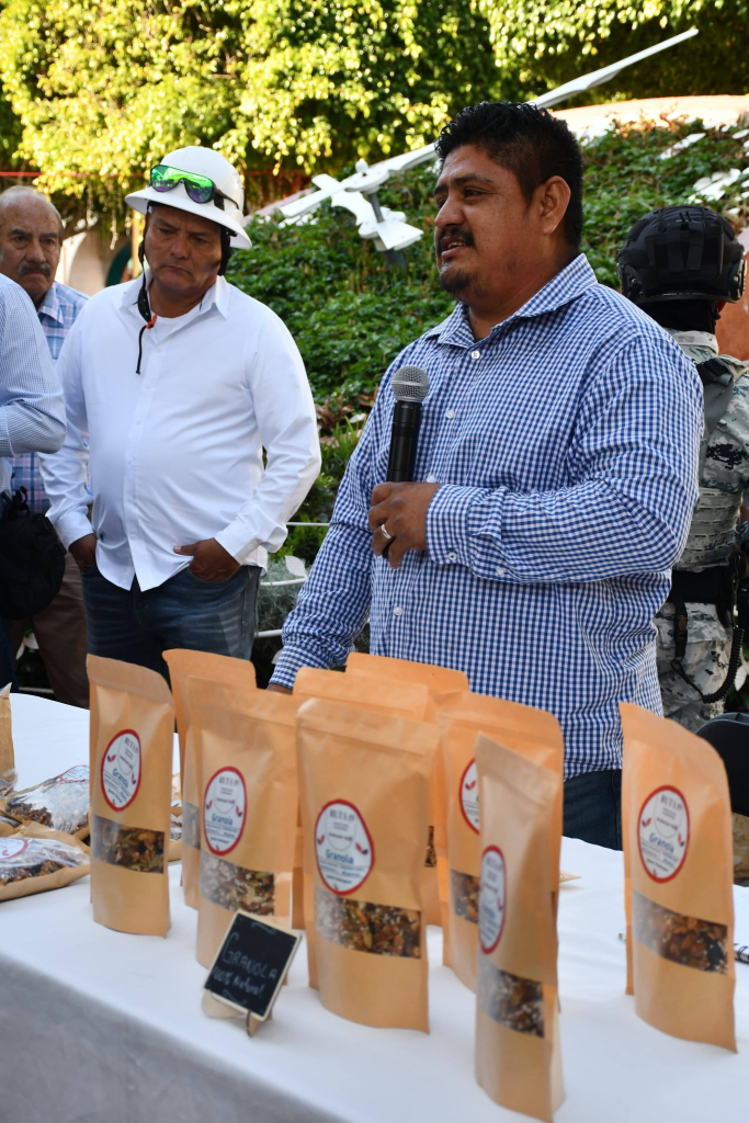 En este evento único, el Presidente Municipal, agradeció al Facilitador Comunitario, la deferencia de ofertar los productos de más de 20 comunidades locales integradas a «Sembrando Vidas» en el Municipio, ya que así conjuntamente se promoverá la agroecología y el apoyo al comercio y a productores locales sostuvo el edil.